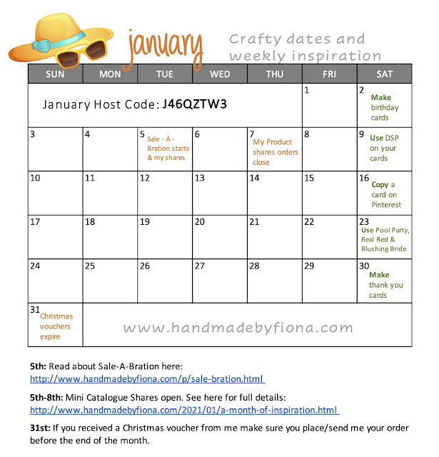 Happy new year! I'm kicking the month off with some crafty inspiration and information about what's on this month (at least, what's on that we know about! As always, keep an eye out for specials, offers, and new releases that can come at the drop of a hat - Stampin' Up! love to keep things interesting for us).